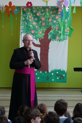 Am 11.4. besuchte Herr Weihbischof Dr.Franz Scharl unsere Schule, wo unsere Kinder in vielen verschiedenen Stationen einen Einblick in unseren Religionsunterricht gaben. Das Brotbacken, Rätseln, Basteln und Puzzlen machte allen viel Freude! Es war ein wunderschöner, gemeinsamer Vormittag, der mit dem Essen des gebackenen Brotes und einem bischöflichen Segen endete. Herzlichen Dank für diesen besonderen Besuch!