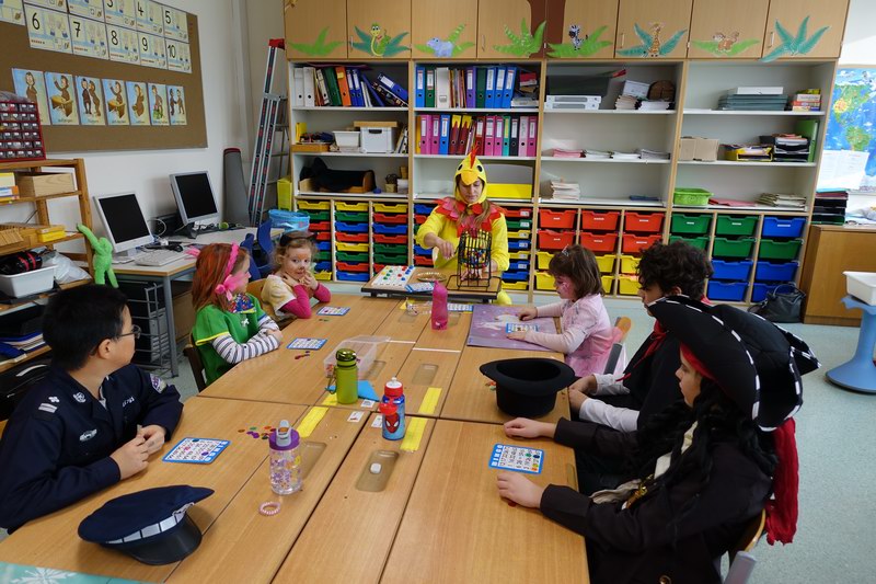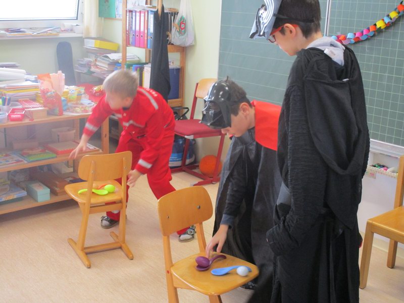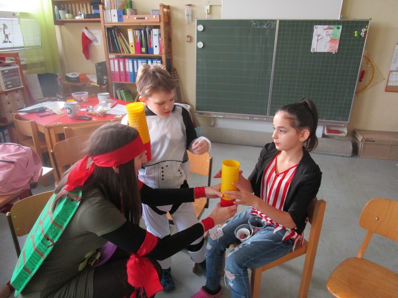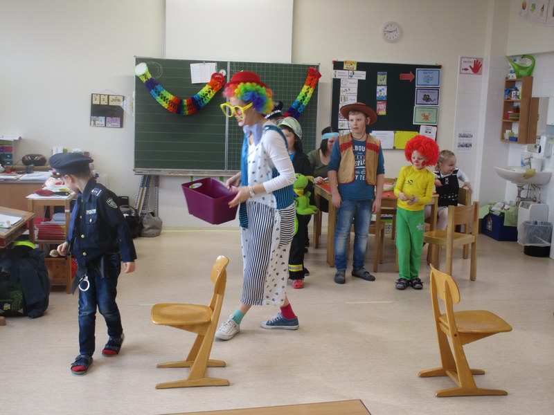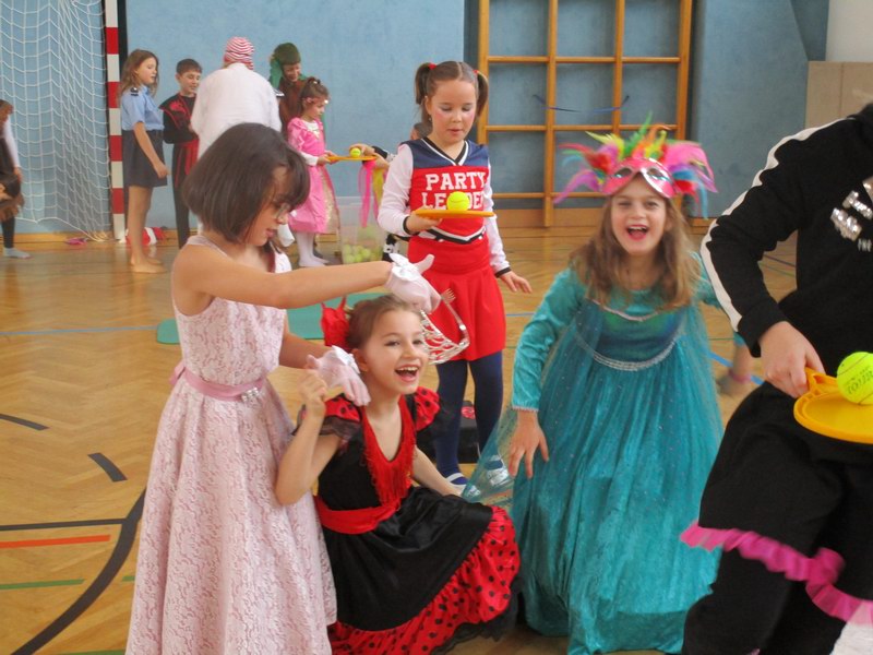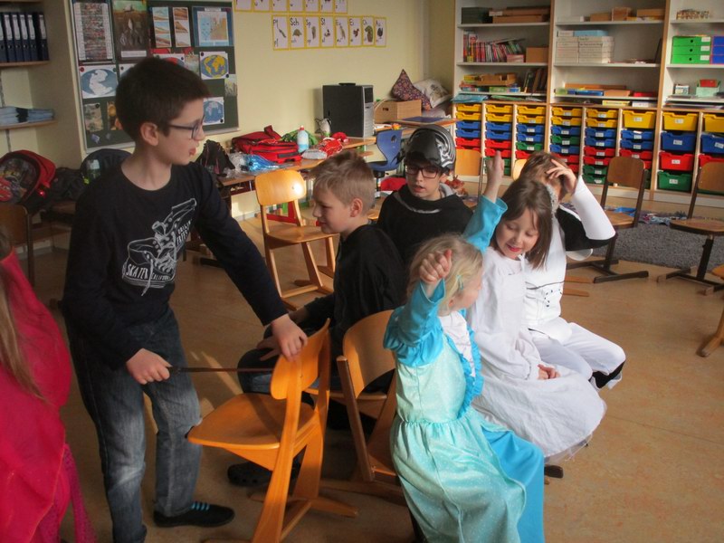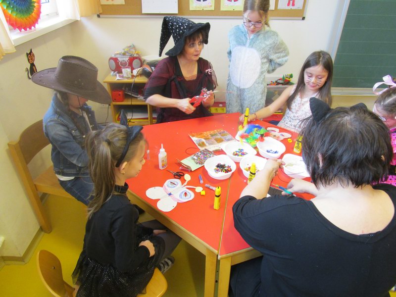 Am Faschingsdienstag herrschte in der Schule reges Treiben und eine gute Stimmung. Viele Stationen, die im ganzen Schulhaus verteilt waren, luden die Kinder zum Basteln, Knobeln, Tanzen, Spielen, Zaubern und vieles mehr ein.